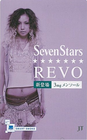 2006-4-2 明日4月3日から全国発売される セブンスターレボ・ウルトラライトメンソールですが、今年1月に静岡県で先行限定販売されていました。こちらの画像はその静岡県でのイメージキャラ? 自動販売機のパネルにも彼女の絵が張られていたそうです。パッケージそのままの藤色のイメージカラーと共に春らしさ、軽さを良くイメージしているように感じます。