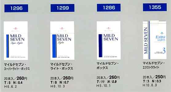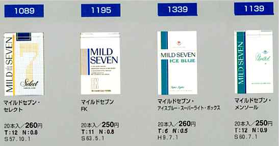 マイルドセブンスリムライトメンソール 20本入り \280 T=6mg N=0.4mg 東京都限定発売・廃止 |