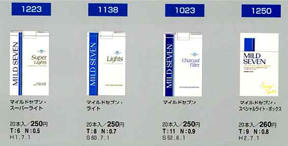 マイルドセブンワン・ソフトパック 20本入り ¥250 T=1mg N=0.1mg 2003-3-3 新発売 デザイン変更 |