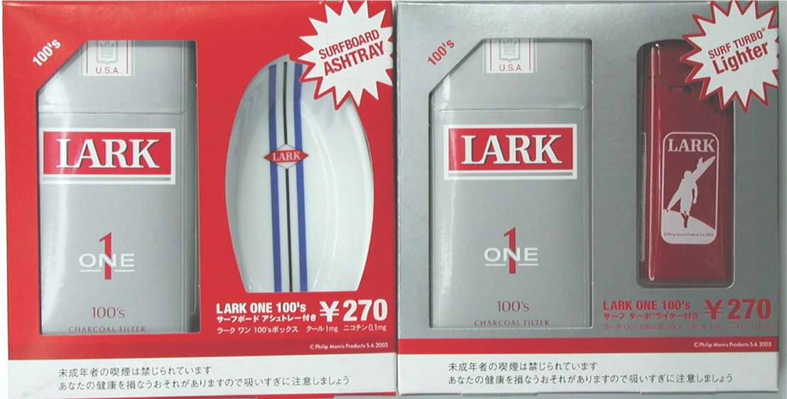 - ラークワン 1個パック 特製灰皿付き(赤・青・黄色3色有り) 特製電子ライター付き (\270)7-18入荷