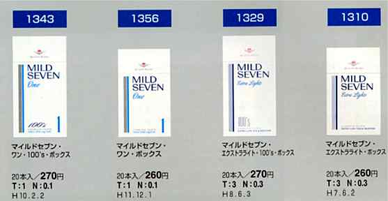 マイルドセブンワン・ソフトパック 20本入り ¥250 T=1mg N=0.1mg 2003-3-3 新発売 デザイン変更 |