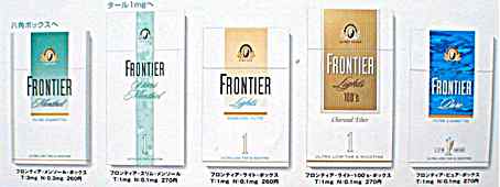 2001年6月以降順次フロンティア各種がリニューアルされます。 フロンティアスリムメンソールは T:1 N:01 に変更になります。 |