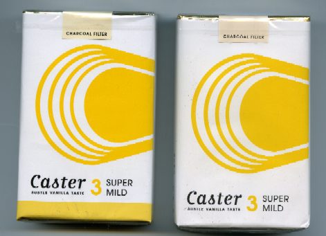 今日の東京 最高気温39.5度を記録したとか記録的に暑い日でした。(アスファルトの道路上では優に40度以上だったのは言うまでもないことです) 日が落ちてやっとタバコ詰めなども出来るようになったのですが、そんな中 kikurinさんが来て下さいました。そこで出た話題は8月2日全国発売になるキャスタースーパ−マイルドの事。弊店には広島版(右)が以前から在ったのですが、彼には初のお目見え。写真のように見本品の全国発売版(左)と両者を並べてみると下部のラインが加わりCaster3 SUPER MILDの文字位置が動いた以外にも細かい部分で違いがあることを発見しました。
